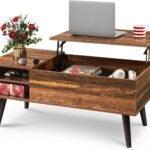 WLIVE Lift Top Coffee Table for Living Room,Small Coffee Table with Storage, Adjustable Shelf and Storage Compartment, Mid Century Modern Living Room Table, Wood, Rustic Brown