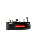 Oneinmil Fireplace TV Stand with 36″ Electric Fireplace, LED Light Entertainment Center, Modern Wood Texture Entertainment Stand with Highlight Storage Cabinet for TVs Up to 80″, 70 inches, Black